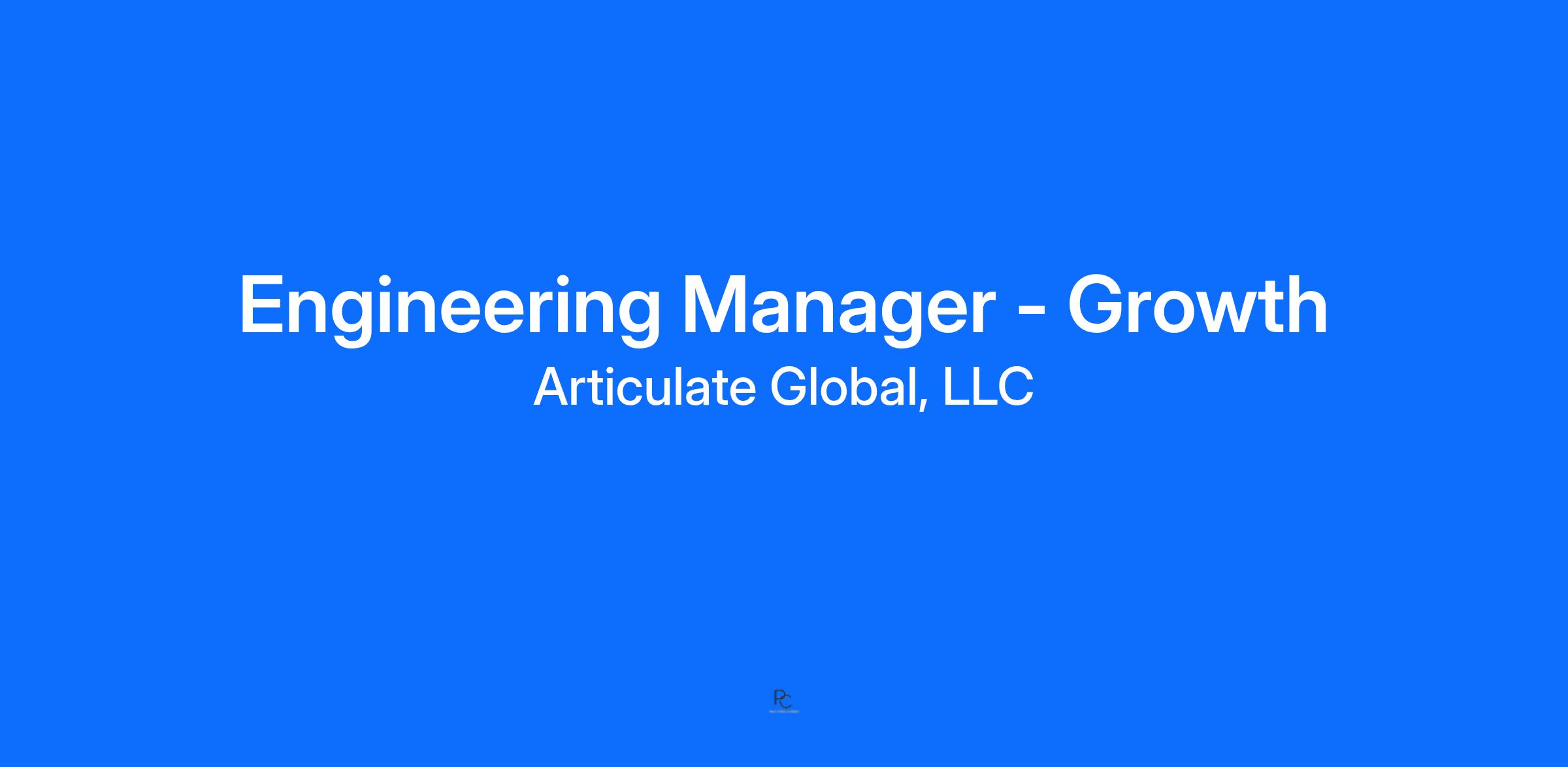 Articulate is looking for an Engineering Manager to join our Growth Team! As an engineering manager, you'll lead a team of 4--6 engineers focused on accelerating how customers discover, adopt, and expand their use of Articulate products. Comfort with management practices, strong collaboration skills, and data fluency are key in this role. As a leader, you'll be accountable for your team shipping reliable, scalable features and experiments that drive product-led growth.